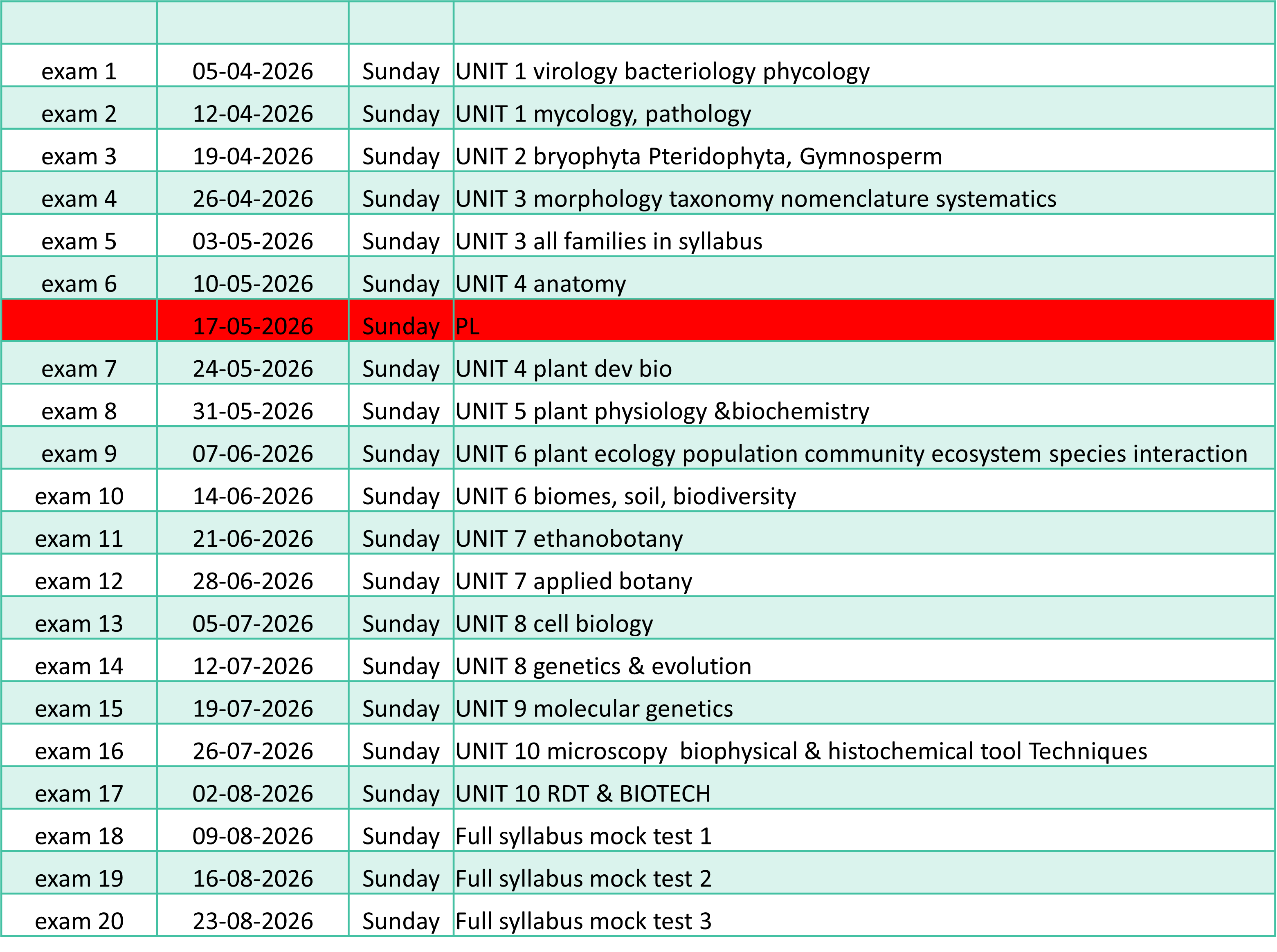 PL का मतलब यहाँ आपको तैयारी के लिए समय दिया गया है